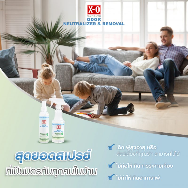 X-O Odor Neutralizer คือผลิตภัณฑ์ที่กำจัดหรือทำลายกลิ่นโดยตรง ไม่เหมือนสเปรย์กำจัดกลิ่นตามท้องตลาดที่กำจัดกลิ่นด้วยการ “ คลุม “ กลิ่นที่คุณไม่ชอบด้วยน้ำหอม ซึ่งเป็นวิธีที่ไม่ถูกต้องและยังก่อสารพิษให้ผู้ใช้และคนในบ้าน อีกทั้งยังทำให้คุณวิงเวียนศีรษะ ถ้ากลิ่นของอาหารหรือน้ำหอมนั้นรุนแรง